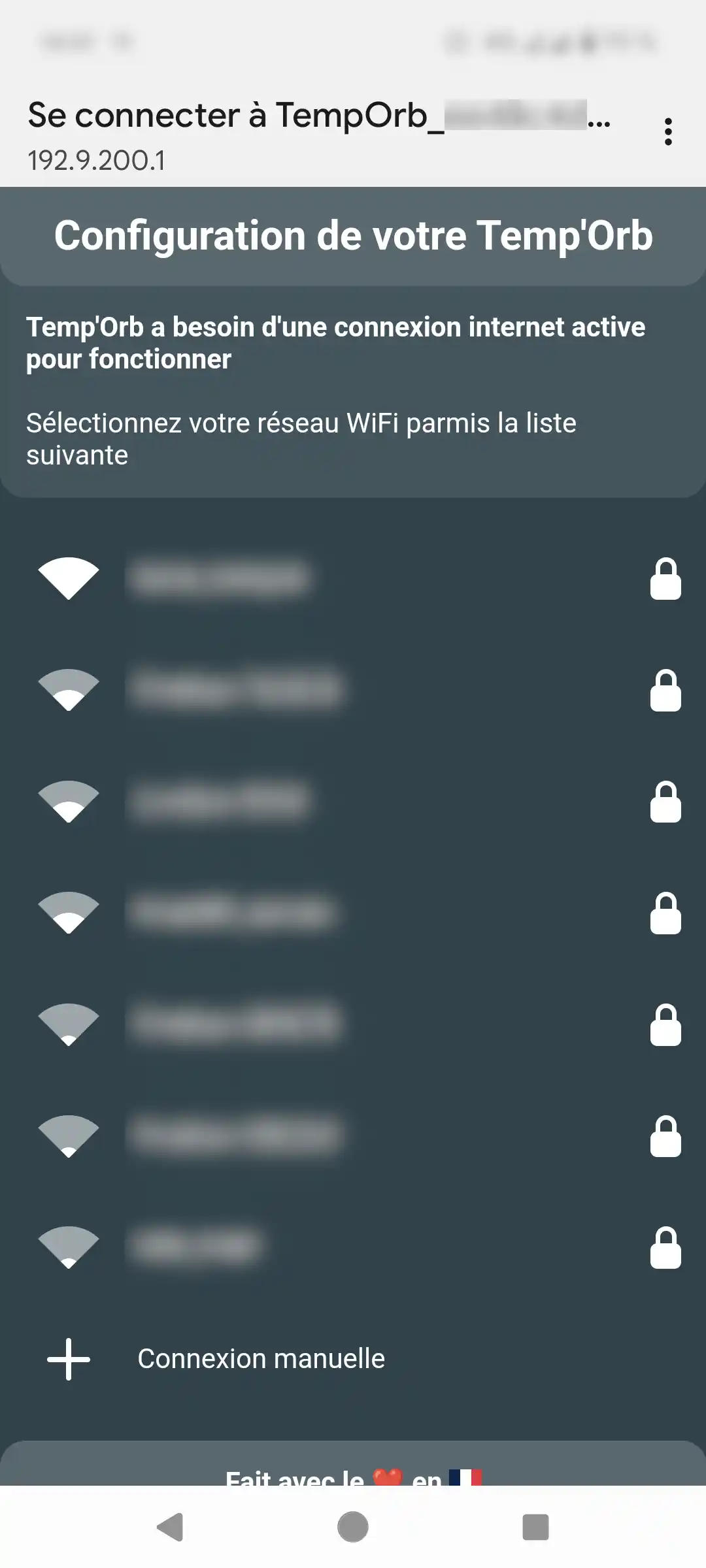 L'appareil émet son propre réseau Wi-Fi avec un nom commençant par TempOrb.