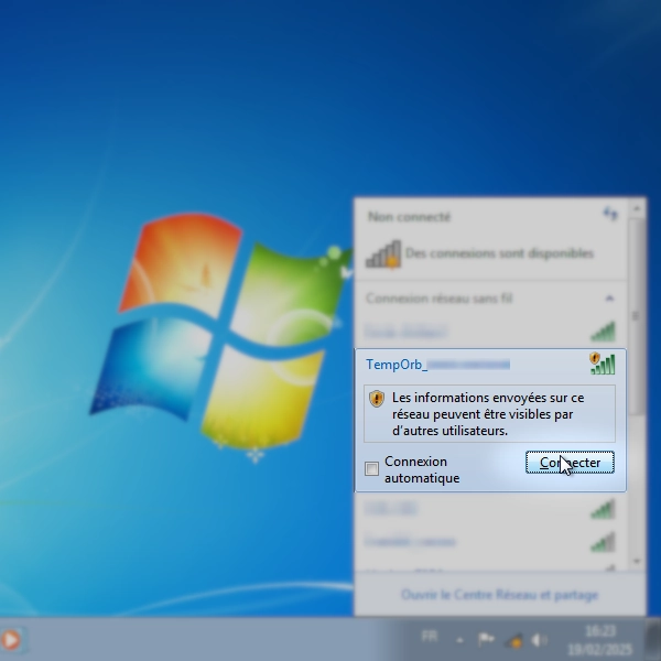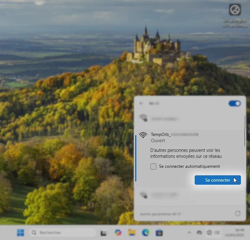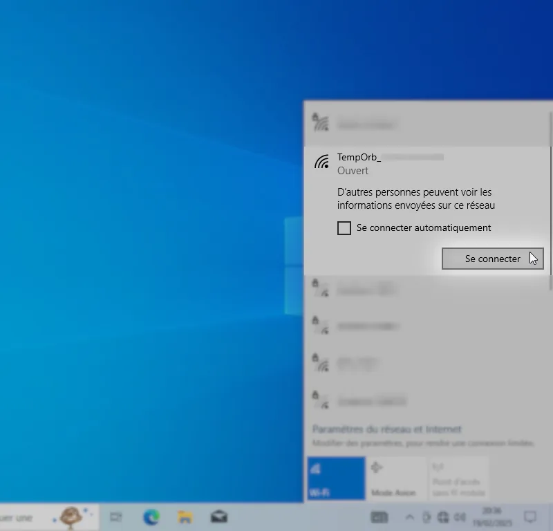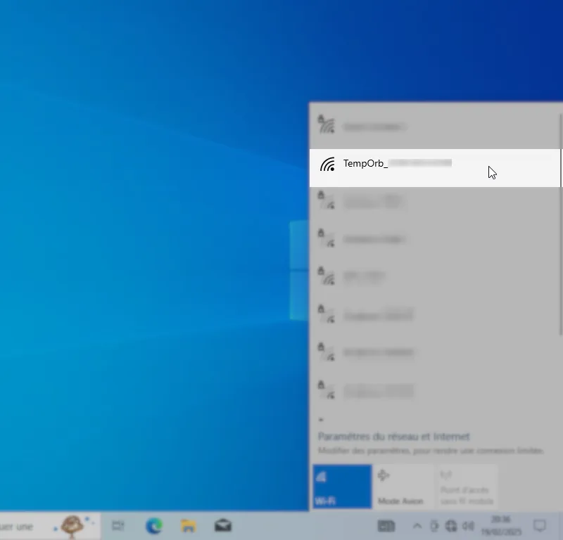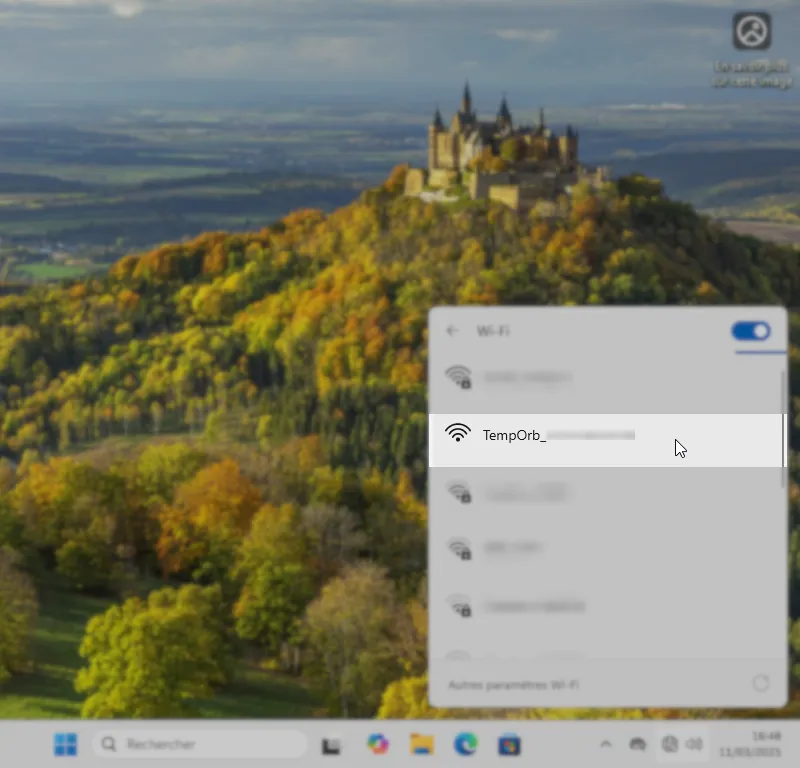 Attendre que le réseau TempOrb apparaisse dans la liste et cliquer dessus