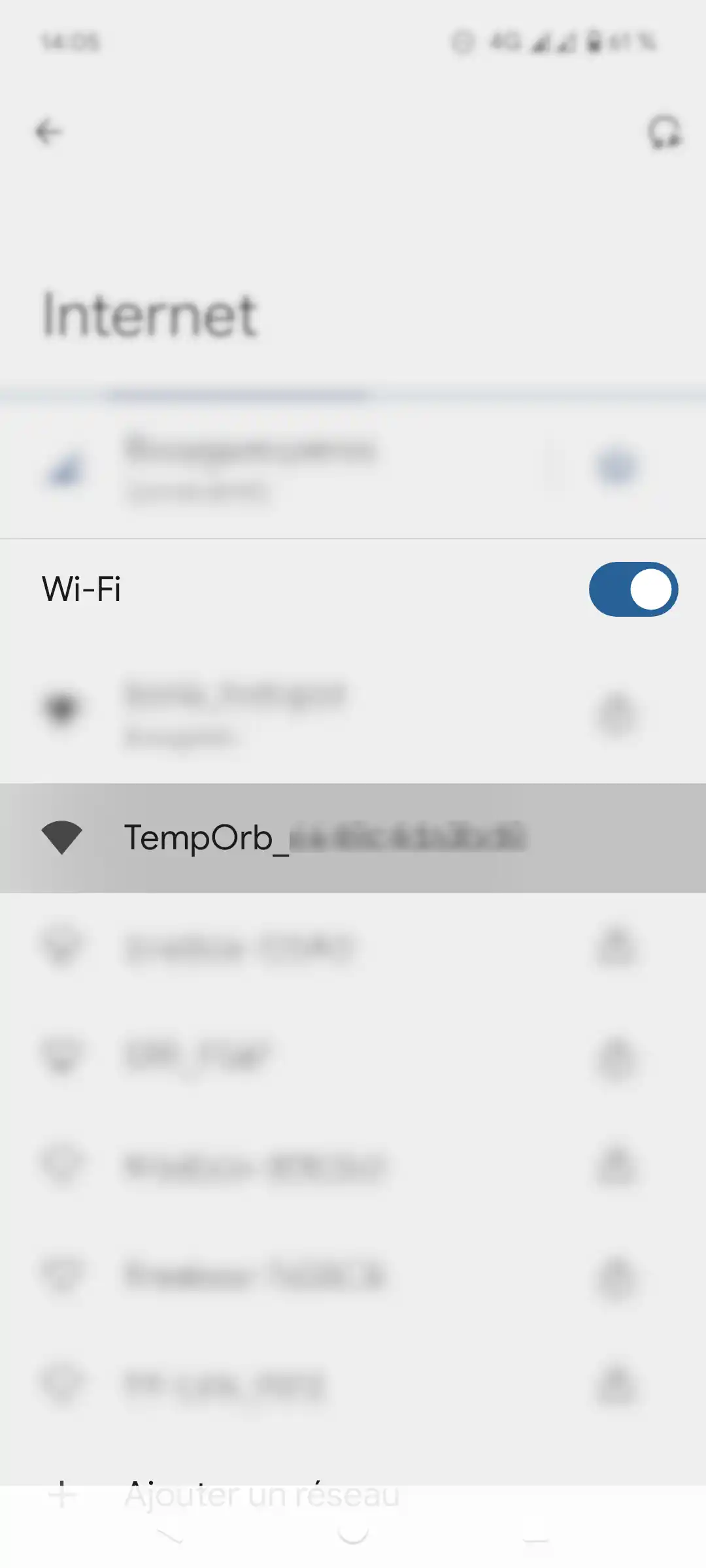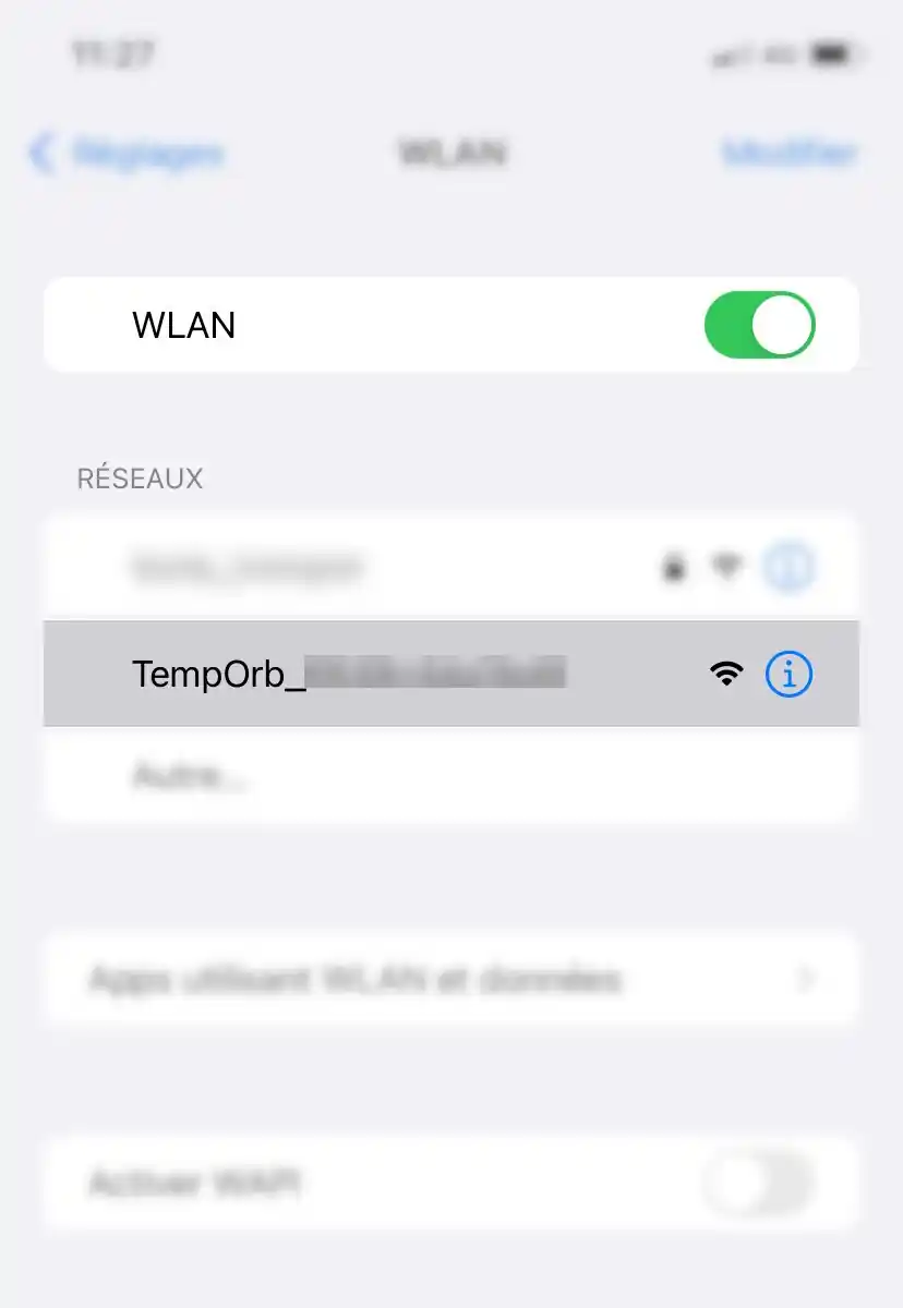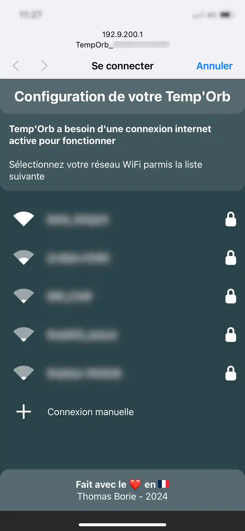 L'appareil émet son propre réseau Wi-Fi avec un nom commençant par TempOrb.