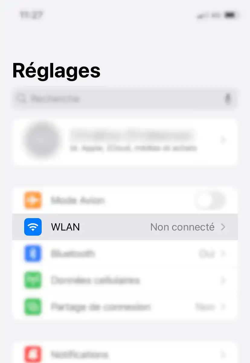 Exemple ci-contre : Impossible de se connecter au Wi-Fi