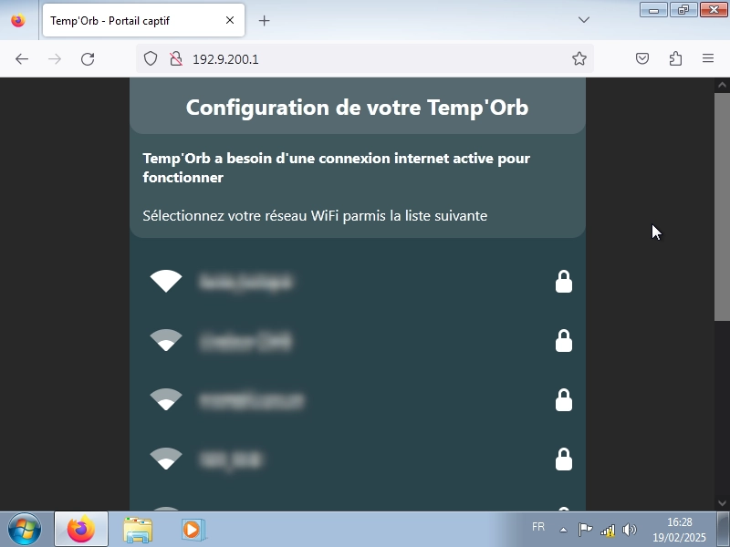 Il est parfois nécessaire de resélectionner le réseau TempOrb pour ouvrir l'interface de configuration de Temp'Orb
