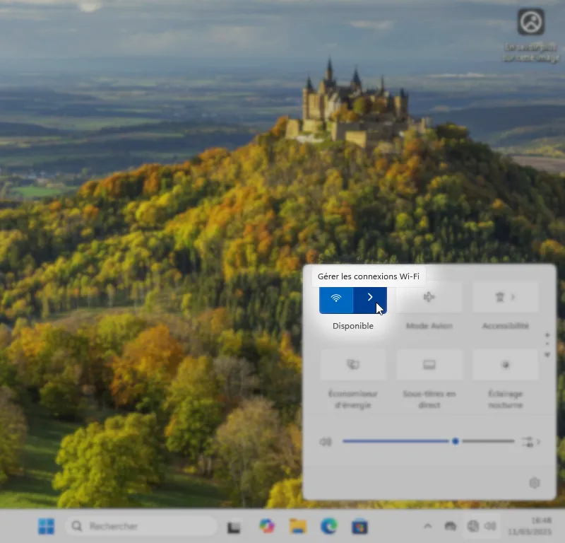 Accéder au sous-menu Wi-Fi en cliquant sur la flèche